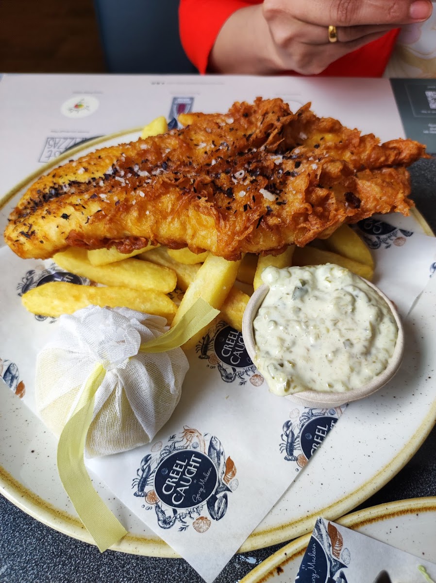 Drinks and a meal. Lovely place. Great choice of foodstuff. Creel caught cod sandwich was lovely. Friend got pizza. Nice when you both want to eat different things and you can pick what food place you want to go to and eat together.